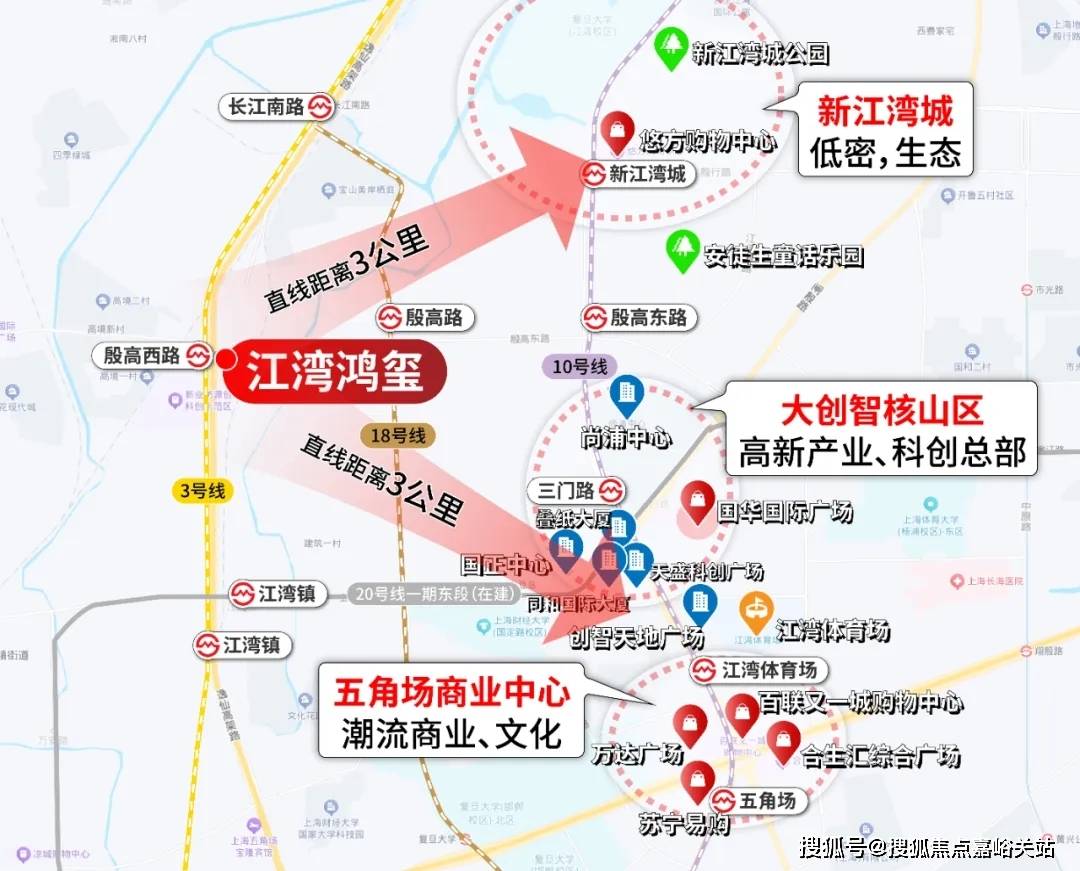 江湾鸿玺位于宝山、虹口、杨浦三区的交界处,位置相当好,将三区发展红利收入囊中!项目与五角场商业中心、大创智核心区、新江湾城相距不过3公里,一脚油门即可到达。