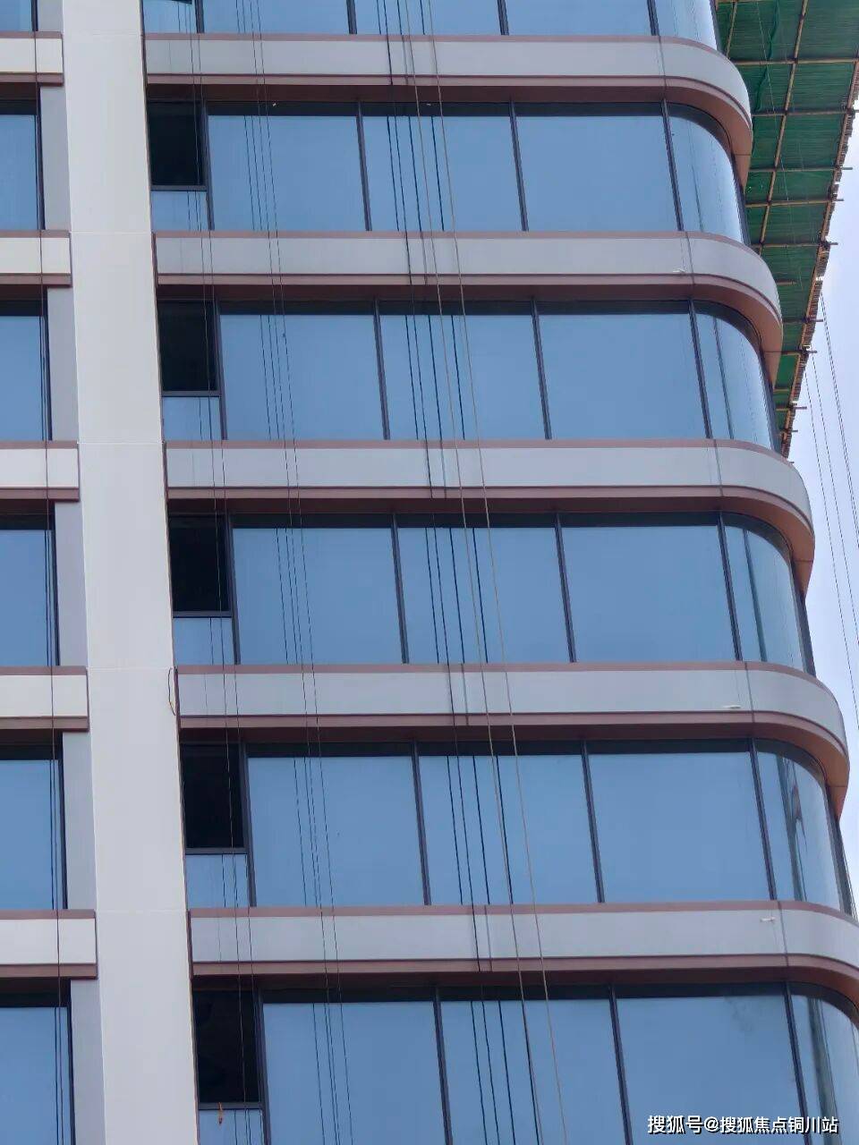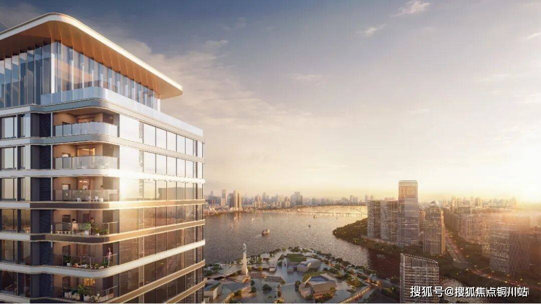 外立面采用高透光环保玻璃,营造出自然与光影的通透感,与奔涌的江河之水相呼应。采用超大尺寸落地玻璃、平开窗及饰面玻璃使楼层形成统一整体,楼层衔接处采用米白色铝板线条,通过富有韵律的线条肌理,将建筑与自然融合。