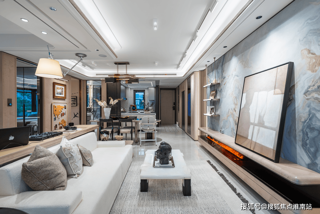 电视背景墙颜值跃升,无论大小户型均较此前更显高级;吊顶也采用定制设计,告别单调平层。