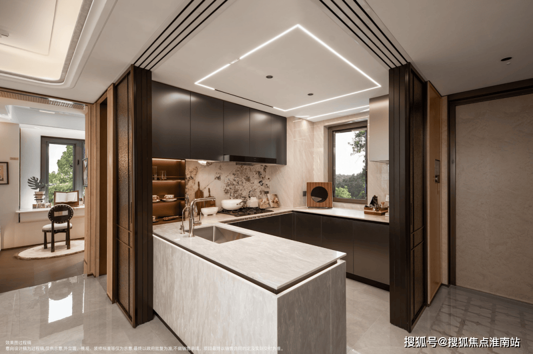 甚至解锁岛台设计,朋友聚会、家庭聚餐再也不用“挤着坐”。而当半开放厨房与去过道设计结合,更实现了LDKB一体化的场景串联