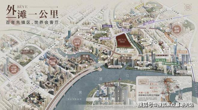 外滩瑞府」项目的全景阳台上,左手是外滩万国建筑群凝固的百年资本史诗,右手是陆家嘴三件套刺破天际的金融獠牙,脚下则是北外滩未来的480米浦西第一高楼。