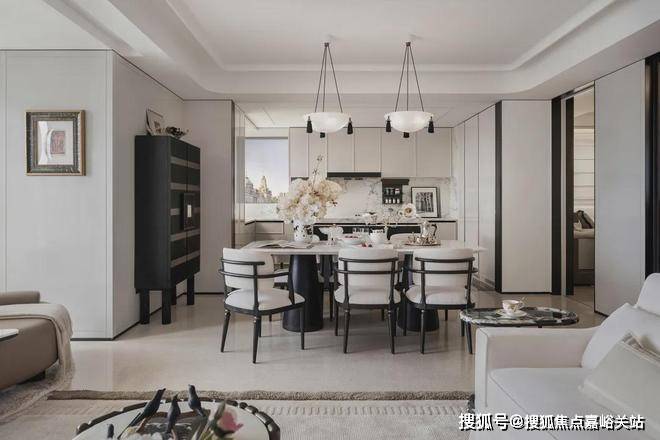 厨房更是拥有别墅级大空间,通铺中央空调、地段,甚至还有交付的奢石大岛台。