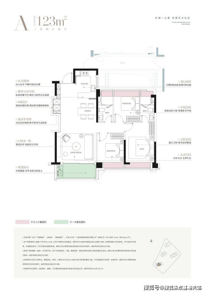:三开间朝南+LDKB一体化设计+全卧室飘窗,主卧套房私密,独立卫浴+衣帽间,270°转角飘窗阻隔外界视线;