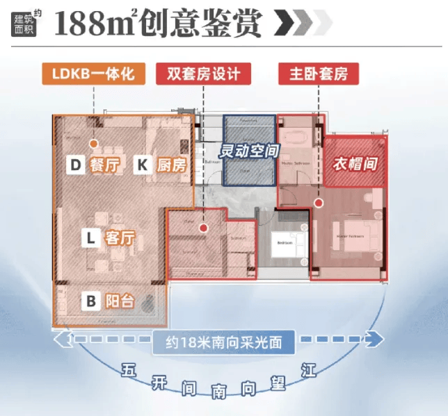 这款大户型是项目的奢享之作,双主套设计,能充分保障家庭成员的私密性,特别适合多代同堂的家庭长期居住。主卧配备270°飘窗,傍晚时分能俯瞰珠江落日,将江景美景尽收眼底。独立家政间的设计更是贴心,让洗衣机、扫地机器人有了固定摆放处,家务收纳更整洁,大大提升了居住的舒适度。