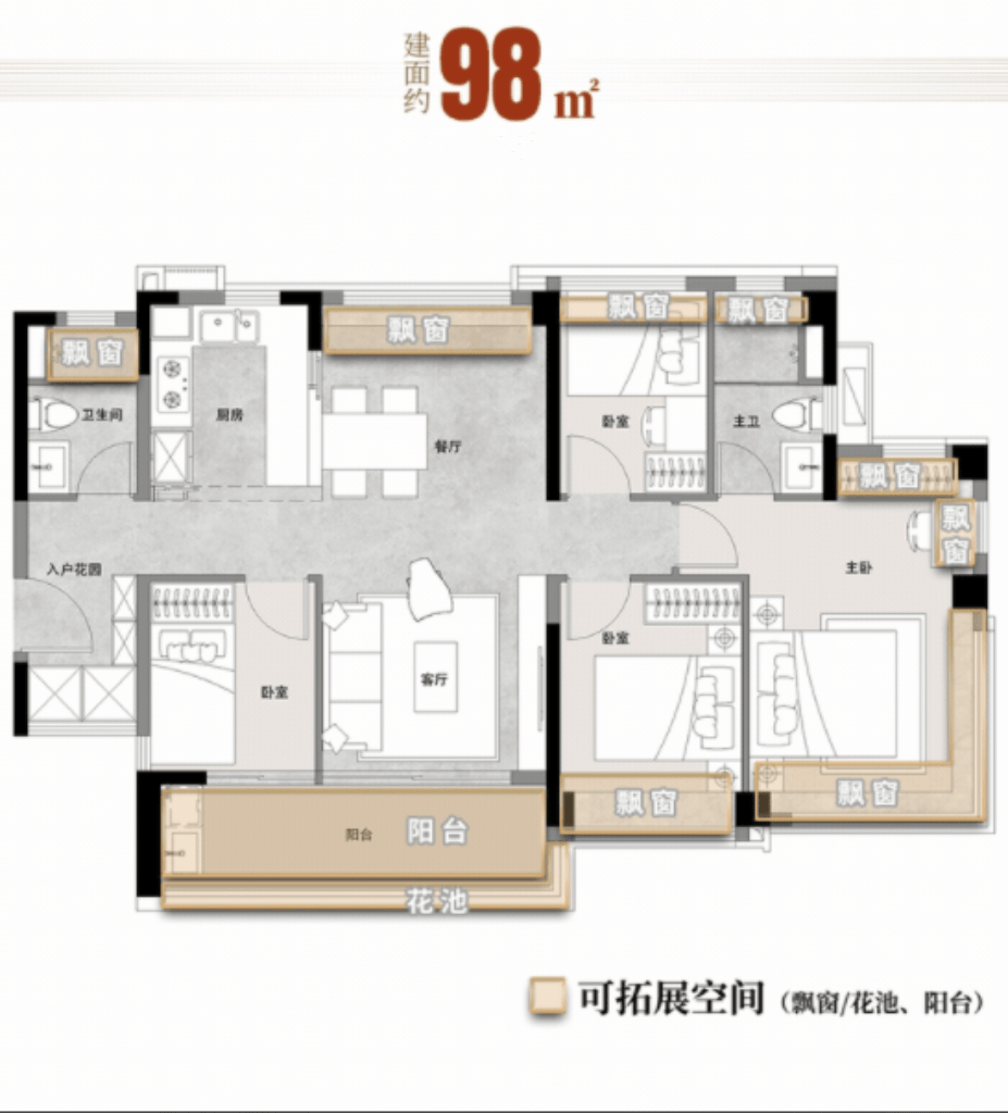 答:项目在售户型覆盖刚需到改善,包括98㎡3室2厅2卫、125㎡4室2厅2卫、140㎡4室2厅2卫、188㎡4室2厅3卫。剩余房源明确,98㎡约15套、125㎡约8套、140㎡约6套、188㎡约3套,购房者可直观选择。