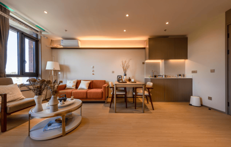 ▪️ 适老细节:全屋采用防滑地板、适老化家具、新风系统、地暖,全方位保障长者居住安全与舒适度;自理单间配备独立新风系统、适老化厨房(电磁炉+升降式橱柜),满足活力长者的烹饪需求;一居室设有专属会客区,方便家属探视交流。