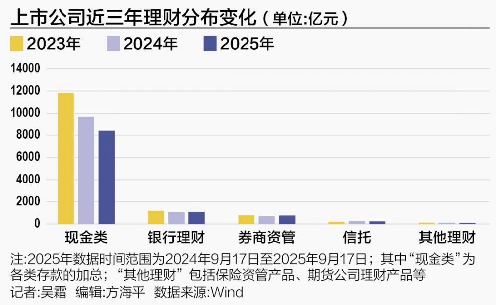 其次,“资管新规”落地带来的行业变革推动了理财产品的“净值化”、多样化发展。银行理财打破刚兑、净值波动可控,但相比于银行存款提供更高的收益率和灵活性;券商资管、信托产品则可根据企业风险偏好和流动性需求,进行个性化定制,涵盖债券、权益、混合等多类底层资产,丰富了上市公司的配置选择。